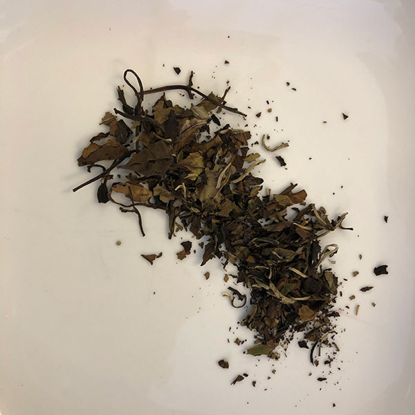 A blend of white tea, dried strawberries, strawberry flavor, and vanilla flavor.